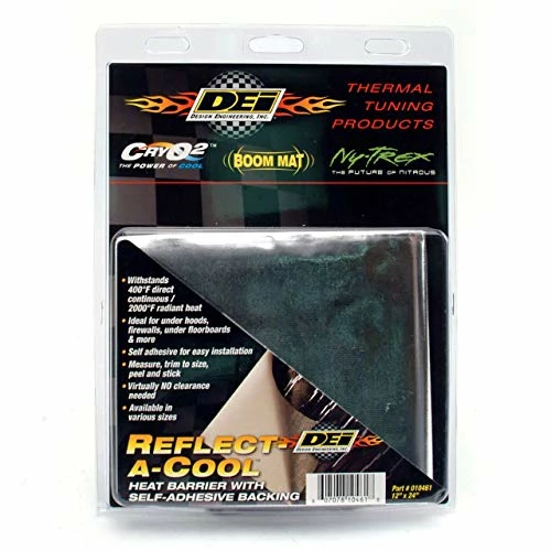 DEI Reflect-A-Cool is constructed of fiberglass material backed with a layer of aluminized reflective foil to handle direct continuous temperature of 400 degrees Fahrenheit and has many uses such as covering firewalls, marine engine compartments, RVs, in the tub of a racecar where typical mechanical fasteners cannot be used, and industrial applications. Reflect-A-Cool can be trimmed to fit just about any shape. Just measure, trim, face reflective side towards source of radiant heat and remove self-adhesive backing. It’s that easy.