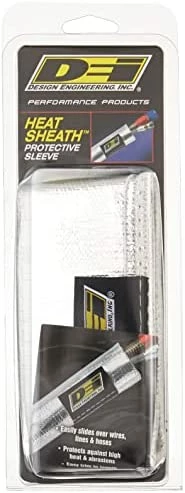 Design Engineering Heat Sheath is an aluminized sleeving sesigned to slide over wires, cables and hoses. Heat Sheath provides ultimate protection from extreme heat as well as chemical and oil spills, dirt, grease and road grime. Constructed from a high temperature fabric and bonded to an aluminized material to reflect heat. Heat Sheath is fireproof and withstands direct heat up to 500 degrees Fahrenheit.