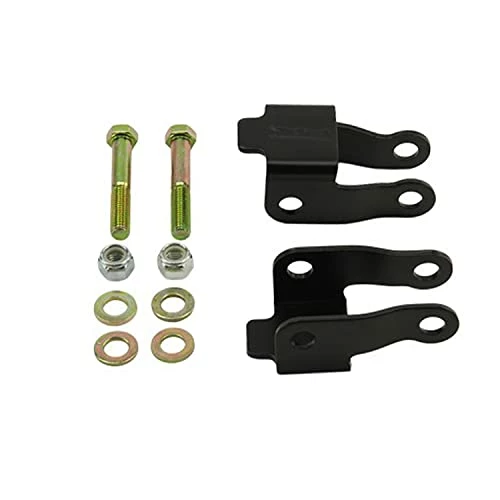 pros-nice black painted coating-thick, solid metal-hardware is also high quality. thick and strong.fits perfectly, no fuss.cons-not intended to work with flip kit imho. BUT it does. (if your shocks collapse enough)-not an extension, more of a “kick out”I have no idea why these are called “shock extension kits”. they technically do extend the travel but that doesnt help your shock work better. it actually kicks out toward the shock, away from the axle mounting point to correct the angle at which it is working, putting them closer to a stock angle before you went and messed up your truck by lowering it lol.A flip kit kicks the axle back to create a better pinnion angle, well that in turn makes the rear-most shock (driver side) shorter, then adding the “shock extension kit” actually shortens it even more. On my silverado with a 5/8 drop, my driver side shock rides 2 inches smaller than the right side, at 14″ and 16″, respectively. im wondering if i should forgo the left side shock extension all together. hmm. cant say she is riding bad though.i would still buy again. just sharing the knowledge.