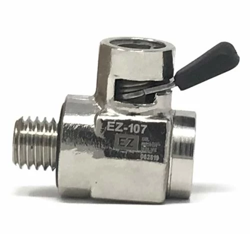 The EZ-107 fits the GM Duramax 3.0 liter I-6 LM2 turbo diesel. I have 4wd GMC and this, along with the EZ H-001 straight hose end allows me to put a clear 3/8″ tube on the valve and drain straight into my oil drain container. No mess, no drips or splashes on the garage floor, no guessing where the arc of the stream of oil is going to hit the container opening 16″ below the engine drain pan hole. It will take roughly 2-3 times as long to drain because of the smaller opening, so add an extra Bud Light to your oil change regimen!