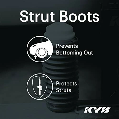 KYB Strut Boot Kits keep your struts protected from dirt, dust, sand, salt and other road debris. These harmful elements cause abrasive wear to the polished shaft, upper seal & bushing. KYB Strut Boot Kits prevent these contaminants from entering the strut by covering the entire strut shaft in a highly durable plastic bellows. This can easily extend the life of the strut. The KYB Strut Boot Kit includes a poly foam travel-limiting bumper. It’s designed to protect the strut from bottoming out and protects other components from extreme movement damage.