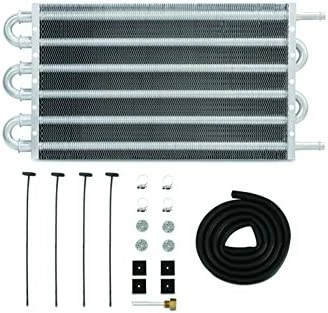Keep high fluid temperatures at bay with a Mishimoto Universal Transmission Fluid Cooler! This cooler features a highly efficient 12.0″ x 7.5″ x 0.75″ tube-and-fin core that promotes dramatic temperature drops. Mishimoto universal fluid coolers are applicable for use with transmission fluid, engine oil, power steering fluid, and a variety of other automotive fluids. This ready-to-install kit includes 5′ of durable rubber hose, a universal mounting kit, and a four worm-gear clamps for secure connections. The universal mounting kit provides installation flexibility to fit any application. This cooler utilizes 3/8″ push-on fittings, perfect for use as a replacement for a damaged factory cooler, or as an upgrade to a vehicle not equipped with a liquid-to-air cooler.