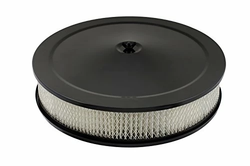 Mr. Gasket Flat Black Easy-Flow Air Cleaners help customize your engine compartment and give you that stealth look. Designed to fit all single 2-, 3-, and 4-barrel carburetors with 5.125-inch necks, these competition air cleaners are ideal for race applications and high-performance street use. They’re 14 inches in diameter, 3 inches tall, include a paper element, and have a flat, smooth top and internal baffles.