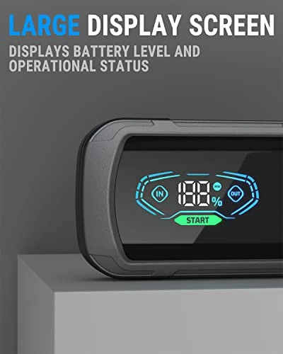 - Large Display Screen – Large LCD display enables the operation status of the car starter, battery power and possible errors at a glance! The integrated screen design of the fuselage makes the appearance more concise and beautiful, which also has the outdoor protection function of IP65 waterproof and dustproof.